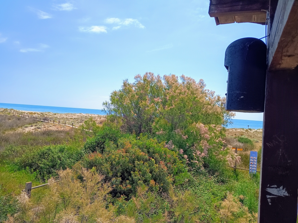 | Description | Instal·lada gràcies a l'Associaciṕ Aurora i al Departament de Territori, Habitatge i Transició Ecològica de la Generalitat de Catalunya a la columna de fusta més propera al mar i l'estany sota teulada del mirador situat a l'esplanada de Torredembarra usada il·legalment com a aparcament. Davant te un tamariu que necessita una esporga important perquè també es pugui veure el lluent d'aigua de l'estany del Sol. Al novembre 2025 l'aparcament es transforma i generen dues llacunes artificials no aparcant vehicles. |